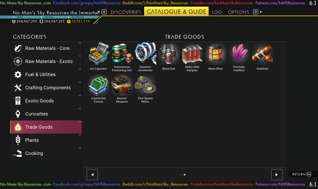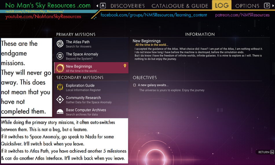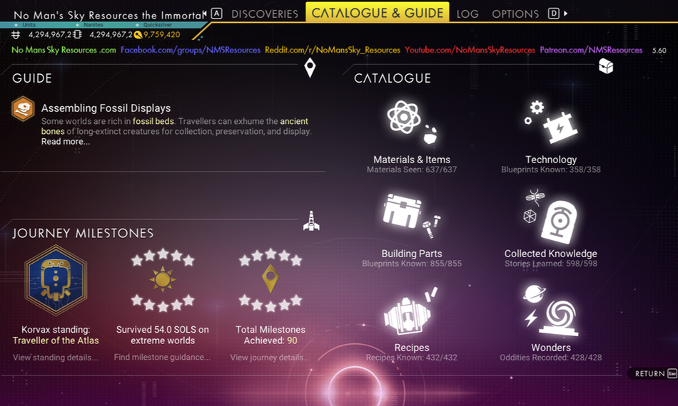 The menus include the discovery menu, where you can earn nanites for uploading your findings.