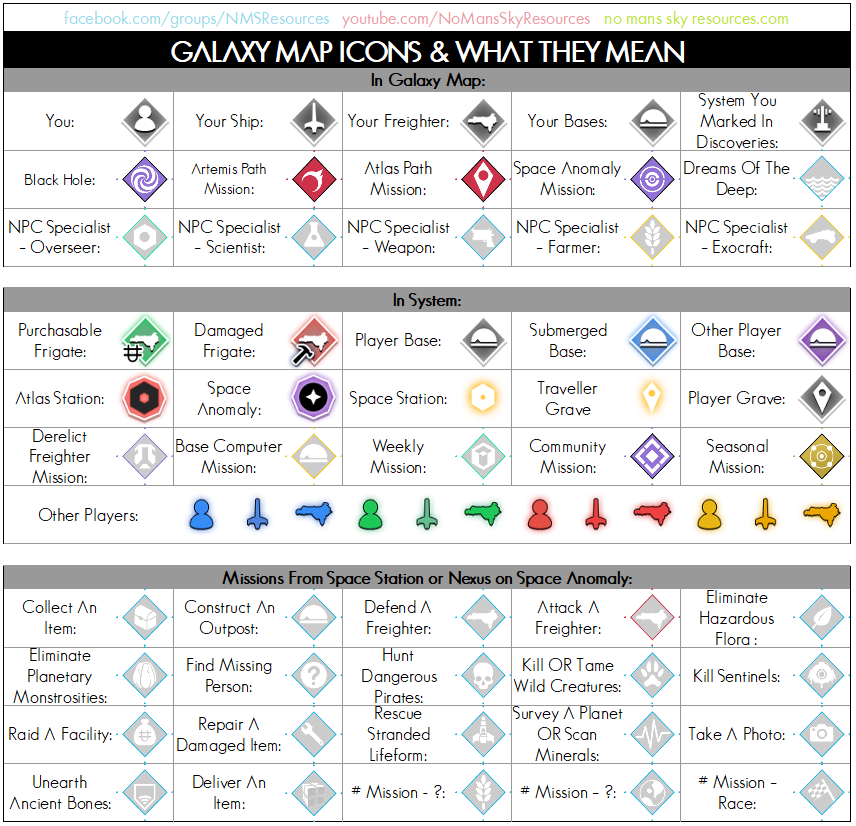 Lifeform (system colour code: red - Vy'keen, yellow - Gek, blue - Korvax, white - Uncharted or Abandoned)